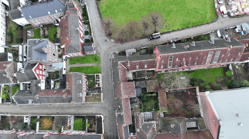 Onze drones boden hiervoor de ideale oplossing. Met hun geavanceerde sensoren en camera’s konden we het volledige Begijnhof snel, veilig en zonder fysiek contact in kaart brengen. Zelfs op moeilijk bereikbare plaatsen leverde deze technologie gedetailleerde en betrouwbare data op.